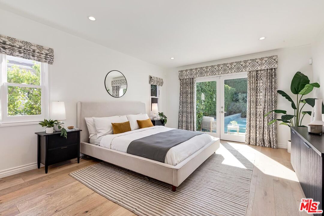 Welcome home to this beautiful sunlit pool residence, perfectly situated on a tree-lined street in the highly desired South Carthay neighborhood. Step outside to your private backyard oasis where an expansive sparkling pool with waterfall features, a luxurious spa, and a hardscape patio, built-in gas barbecue grill area along with an array of citrus trees create the ultimate setting for relaxation or lively gatherings. Casual sophistication defines this home, showcasing the best of California's indoor/outdoor lifestyle. The generous living room is bathed in natural light, accented by expansive windows, hardwood-style flooring, and a cozy fireplace. A well-appointed kitchen with ample counter space and pantry storage opens seamlessly to the substantial family room, an ideal setting for entertaining. The primary suite serves as a serene retreat, featuring French doors that open directly to the pool and spa. The newly updated Zen-inspired ensuite bath offers a dual vanity, a spacious walk-in shower, and a considerably sized walk-in closet. Two additional comfortable bedrooms and one-and-a-half baths complete the main living spaces. Updated systems throughout the home add peace of mind and modern convenience. There are laundry hookups inside as well as the detached finished garage provides additional laundry facilities and abundant bonus space, perfect for an office, studio, or poolside retreat. A California basement offers additional storage options. All this in an unbeatable central location, just moments from Beverly Grove, Miracle Mile, Mid-Wilshire, and Beverly Hills.