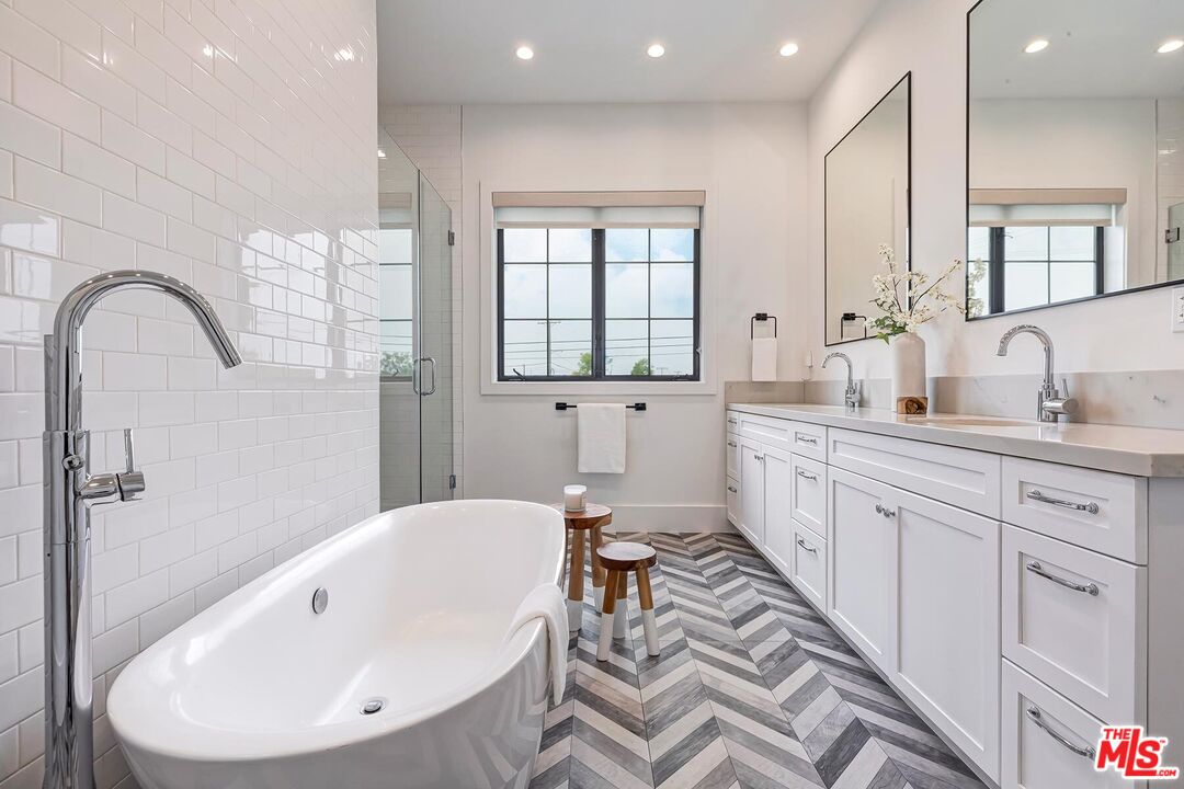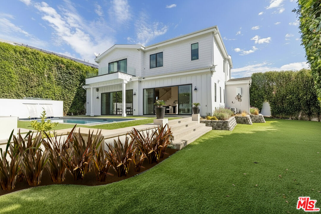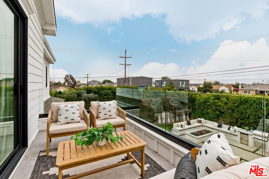 Come and experience this captivating modern farmhouse, a perfect expression of California casual sophistication. This stunning residence showcases a generous, light-filled floor plan with soaring ceilings, gleaming wood floors, and custom designer finishes that elevate every space. From the moment you enter, you will appreciate the thoughtful craftsmanship and fine details.The expansive main living area flows effortlessly into a sunlit formal dining room, highlighted by a wood beam ceiling and designer chandelier that bring an inviting sense of warmth and architectural charm. Down the hallway, panoramic pool views unfold from the heart of the home, a striking open-concept kitchen and great room, featuring a substantial center island, stainless-steel appliances, statement range hood, and abundant storage. The great room dazzles with floor-to-ceiling windows and doors, a marble fireplace with mantle, and notable built-in shelving. A comfortable guest suite with private bath and a chic powder room complete the main level.The upper level, illuminated by a skylight staircase and high ceilings, features a sumptuous primary retreat showcasing a tranquil bedroom suite with a vaulted shiplap ceiling, radiant fireplace, and a private balcony overlooking the serene pool area. A lavish spa-style ensuite bath boasts a freestanding soaking tub, glass shower, dual vanity and two sizable custom closets with built-ins. Completing the second level are three additional spacious bedrooms, each thoughtfully designed with comfort and style in mind two sharing a beautifully appointed dual-vanity bath and one featuring its own ensuite. Step downstairs to the pool-view great room and transition effortlessly to the private outdoor oasis a true entertainer's paradise with a sparkling pool and spa, temperature-controlled cabana with floor-to-ceiling glass and fireplace, and an outdoor kitchen complete with built-in grill, refrigerator, and fire pit lounge. The professionally designed backyard is graced by sunlight throughout the day, offering ample space for recreation, entertaining, and relaxation amid mature trees, lush hedges, and generous flat green areas that provide both beauty and privacy.Throughout the home, custom drapery and refined finishes reflect a designer's eye for proportion and detail, giving each space a curated sense of harmony and balance. It is a home of exceptional character and craftsmanship that truly sets itself apart. Perfectly situated in the highly desired Kentwood neighborhood, this residence offers convenient access to Playa del Rey, Playa Vista, Marina del Rey, and the area's best beaches, dining, and entertainment. An enchanting retreat blending luxury, warmth, and effortless California living.